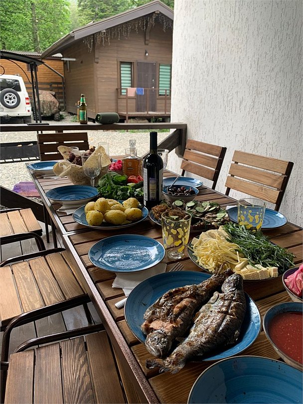 Каждый из них тщательно обустроен для вашего комфорта: здесь есть кухня, ванная комната, спальные комнаты и мангальная зона. Это создает идеальные условия для самостоятельного приготовления пищи на свежем воздухе или душевных вечеров в кругу близких.