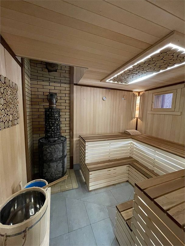 На базе отдыха гостей ждет комфортная баня, способная разместить до восьми человек. Это идеальное место для расслабления и восстановления сил после активных приключений на свежем воздухе, будь то спортивные походы или горнолыжные склоны.