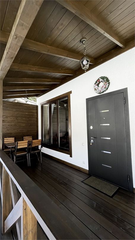 При доме находится терраса с садовой мебелью, рядом мангальная зона.