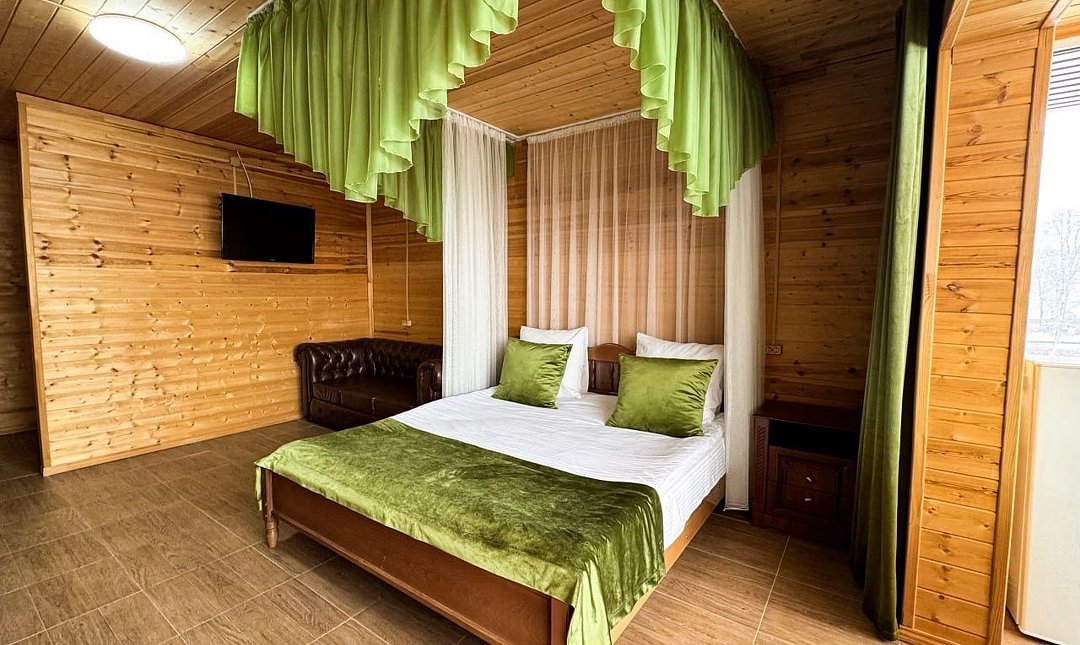 Для проживания есть 2-х, 3-х, 4-х и 5-ти местные домики и номера, удобные и комфортные, с потрясающим видом. На территории охраняемая стоянка, зона барбекю, баня. Есть Wi–Fi. А еще — из базы отдыха вы можете попасть сразу в лес.