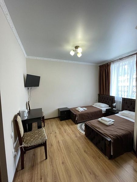односпальные кровати, кресло-кровать (как основное место), с/у, полотенца, тапочки, ТВ, wi-fi, чайник