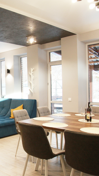 Дом сдается полностью. Рассчитан на 12 спальных мест, размещение возможно от 1-12 человек. Дети до 7 лет бесплатно,