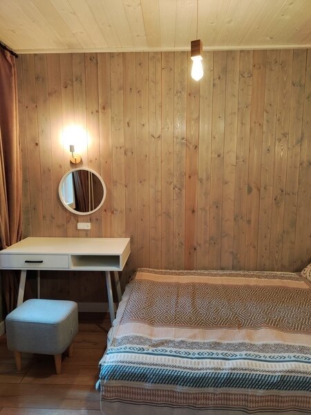 Семейный отдыхДостоинстваОтдыхали компанией из четырех человек, всем все понравилось. Большое спасибо, что позволили заселиться с животными, порадовало дружелюбное отношение к ним. Сам дом новый и чистый, есть все необходимое типа полотенец, тапочек и прочего. Шикарное панорамное окно, плита с индукцией. Хозяева — приятные люди, которые стремятся сделать отдых для гостей комфортным. Баня вообще просто шик. Если еще раз будем в этих местах, остановимся тут.