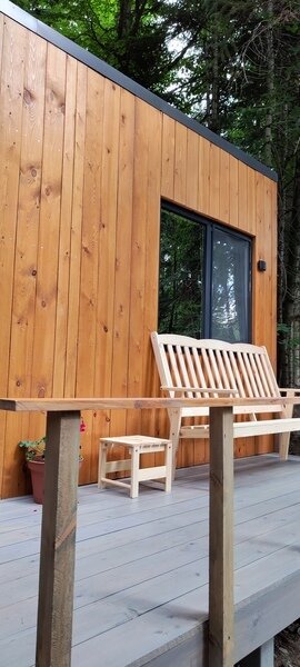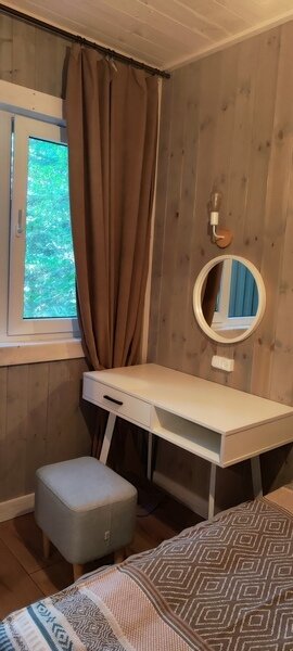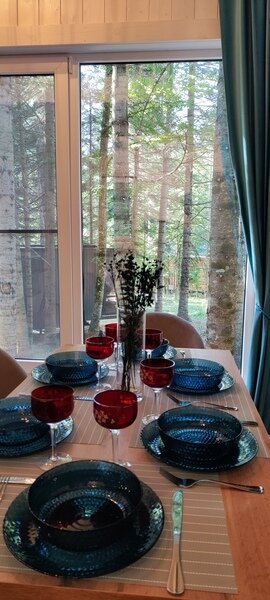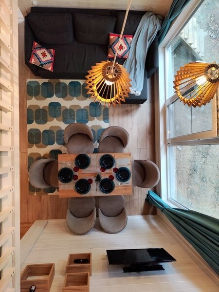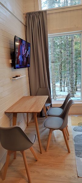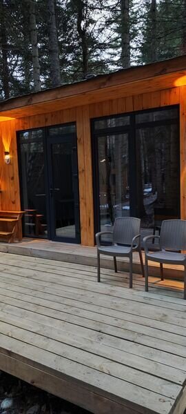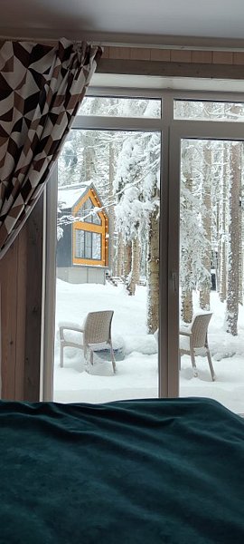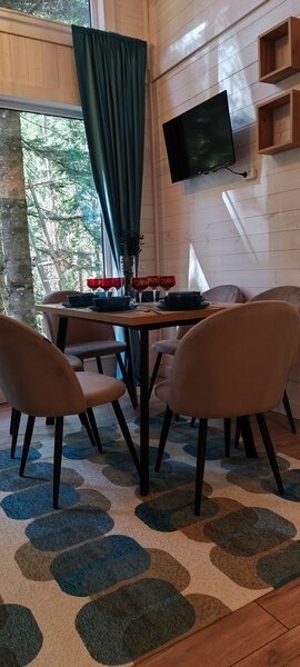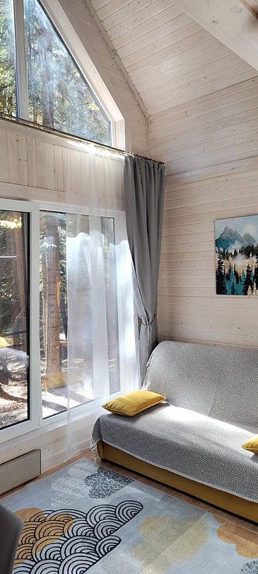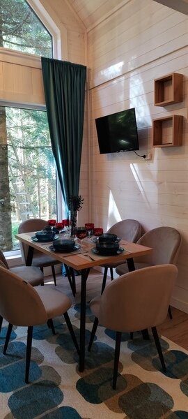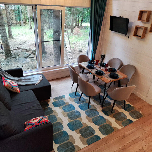 Команда базы отдыха сделает все возможное, чтобы вы почувствовали городской комфорт, оставаясь в окружении природной красоты. В каждом доме имеются большие панорамные окна с видом на лес.