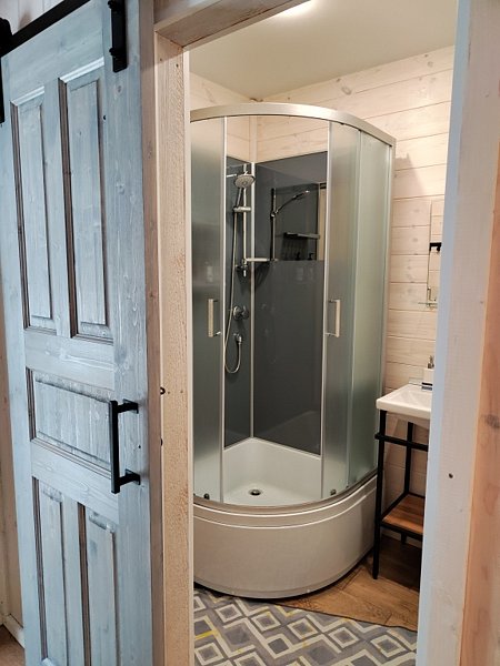 В каждом из домов предусмотрены все удобства для комфортного проживания на протяжении длительного времени. Есть стиральные машины, посудомоечные машины (в домах на 6 и более человек), а также теплые полы в критических зонах.