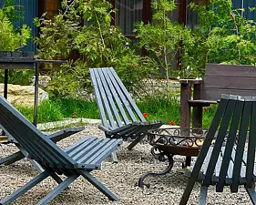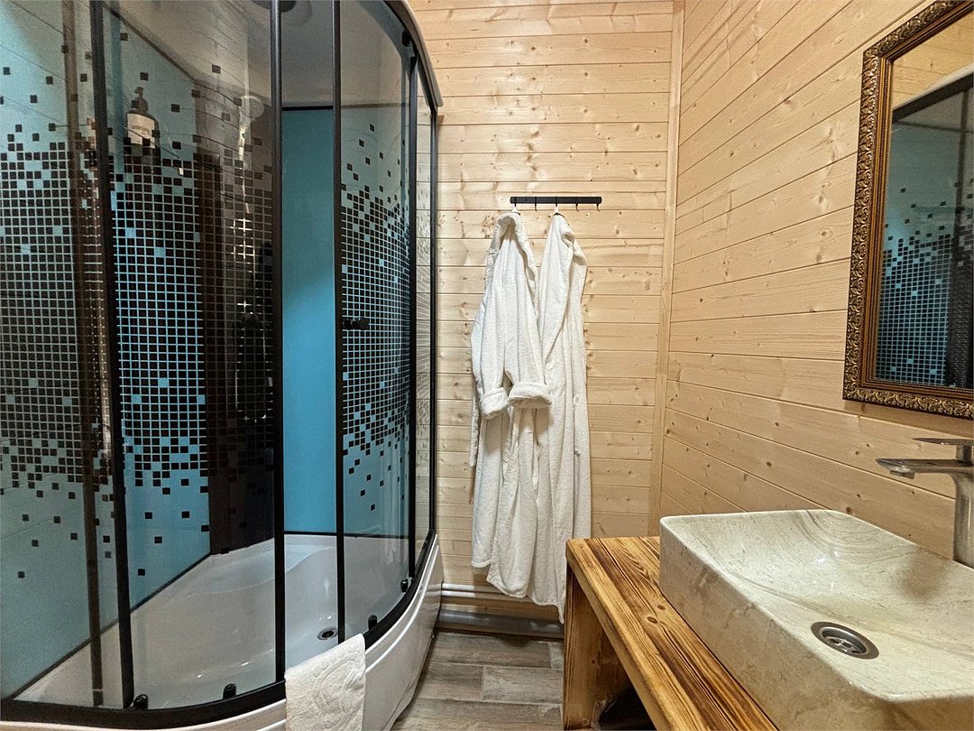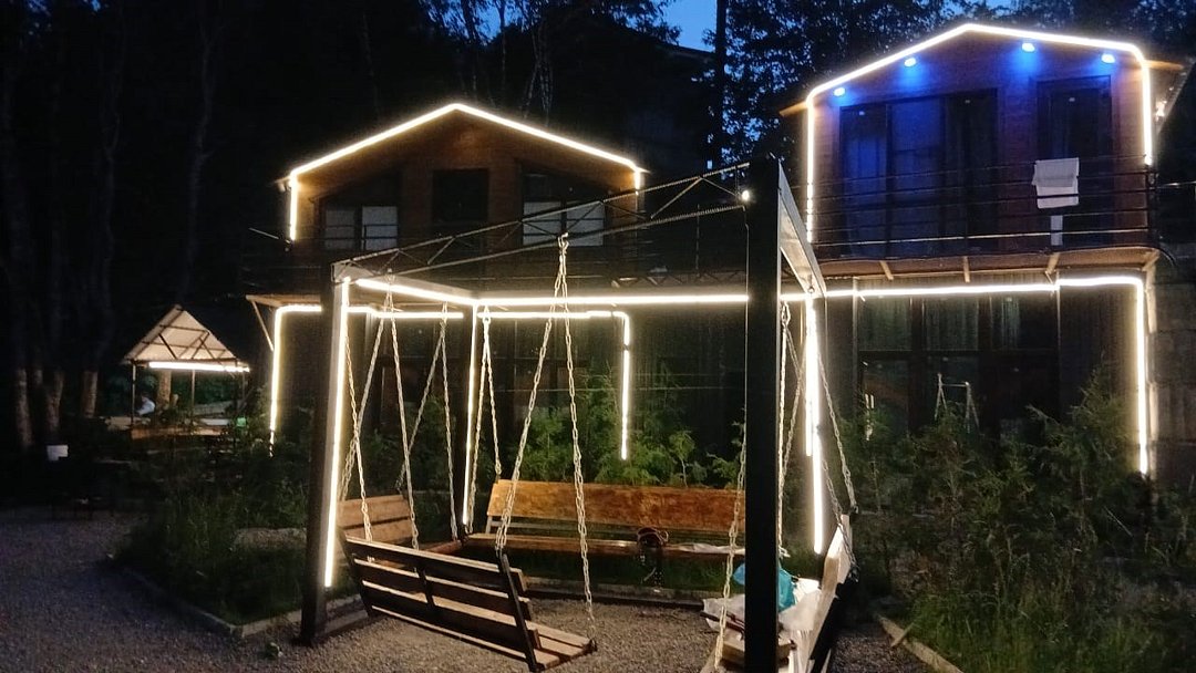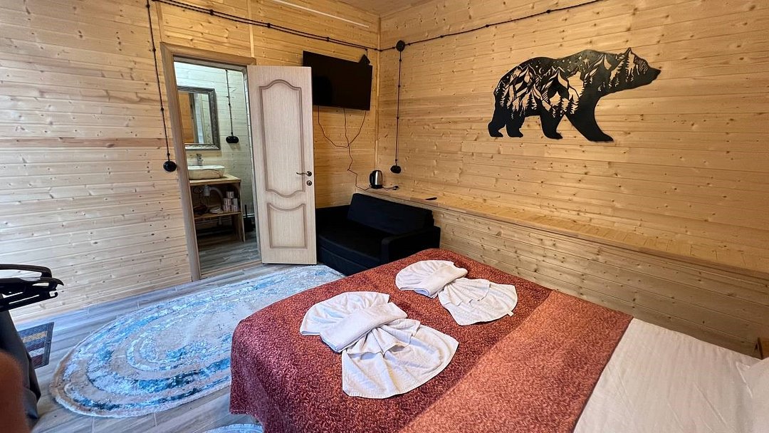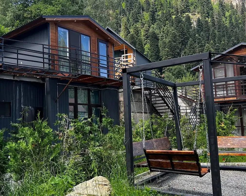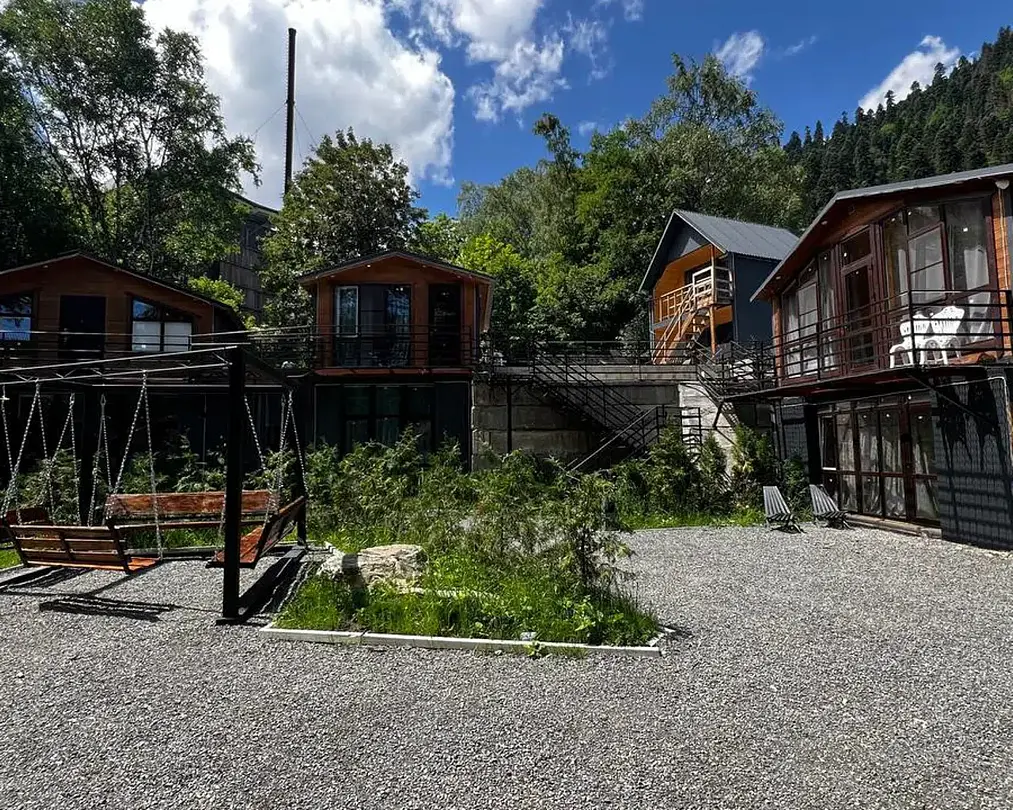Для гостей здесь созданы комфортные домики различных размеров, полностью оборудованные всем необходимым для комфортного проживания. Особое место в «Домбайской сказке» занимает традиционная русская баня на дровах. Горячий чан, из которого открывается завораживающий вид на горы, в сочетании с теплой водой и свежим воздухом делает вечера по-настоящему незабываемыми. Рядом расположены уютные качели и костровая зона, где можно провести вечера в душевных беседах и насладиться теплом семейного очага.