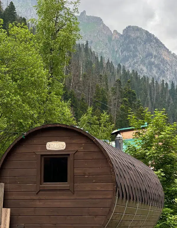 После парилки отдыхающих ждет уютная зона, где можно спокойно отдохнуть и набраться новых сил. Особенно приятно осознавать, что чистый горный воздух вокруг усиливает целебный эффект банных процедур, делая посещение бани незабываемым удовольствием.