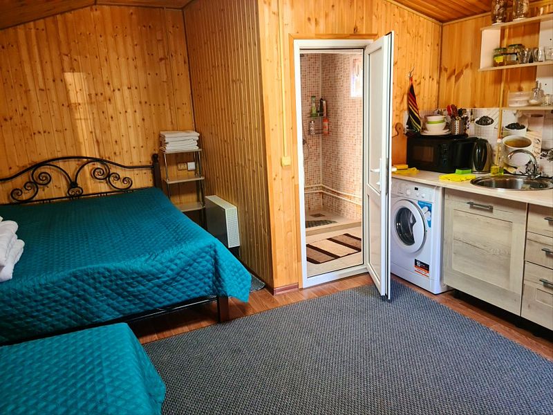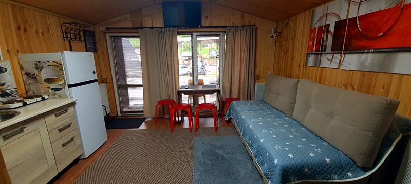 Каждый домик создан для комфортного отдыха: уютная атмосфера, отопление, удобная мебель, канализация и кухня со всем необходимым. Из окон открываются потрясающий вид на горы.