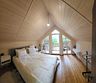 На втором этаже расположены две уютные спальни, каждая из которых наполняет атмосферу индивидуальностью и стилем. Ванная комната оборудована всем необходимым, обеспечивая комфорт и расслабление после активного дня на свежем воздухе.
