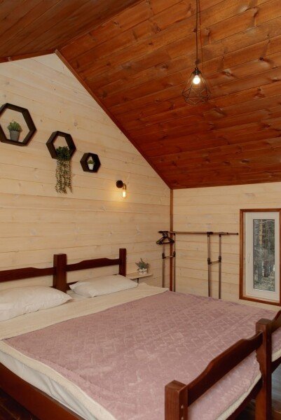 На втором этаже находится большая двуспальная кровать (при необходимости можно раздвинуть) с ортопедическим матрасом и прекрасным видом на лес! Возле каждого дома имеется мангальная зона со всем необходимым инвентарем.