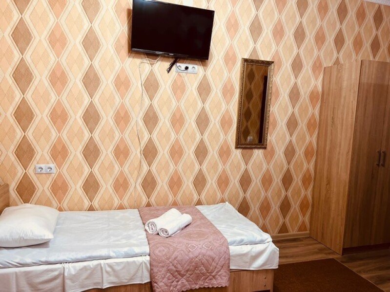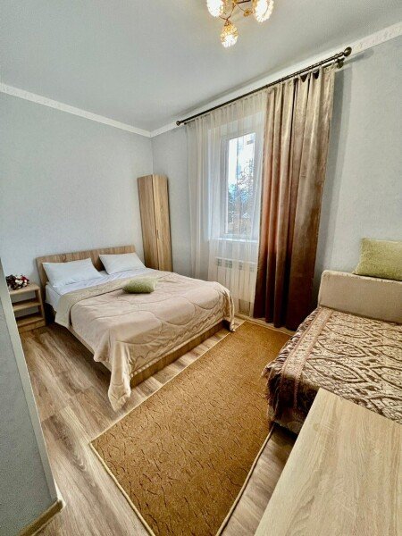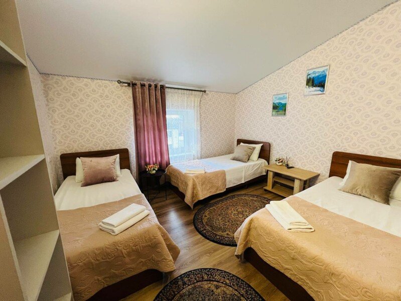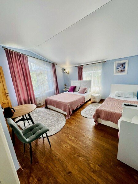 В номере двухъярусная кровать и двуспальная кровать. Во всех номерах ванная комната, все номера оснащены необходимой мебелью: прикроватные тумбочки, столик, шкаф для одежды.