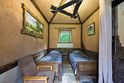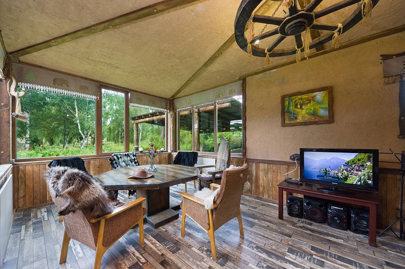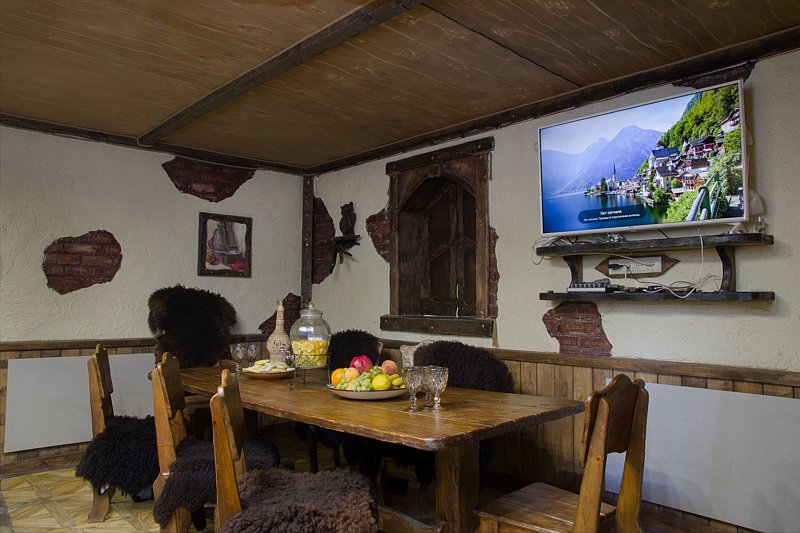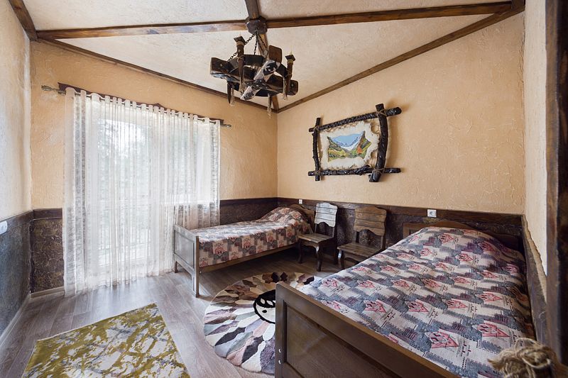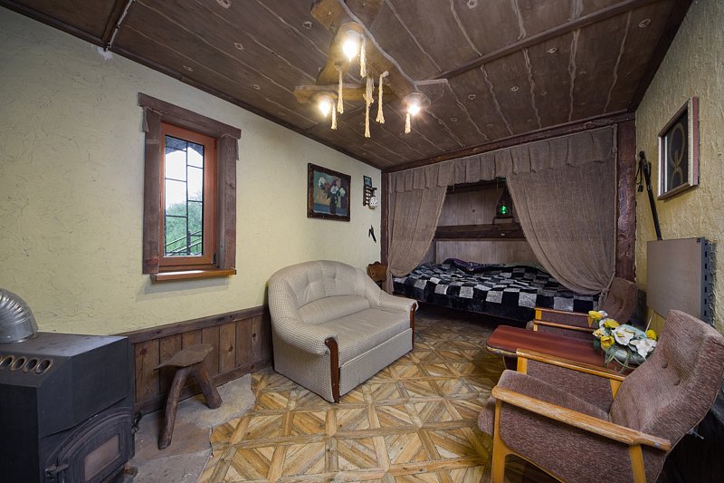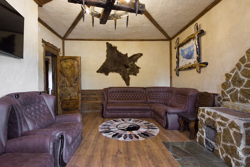 Гостям предлагается расположиться в гостевом доме. На первом этаже расположены три номера, которые вмещают до восьми человек. Также здесь есть кухня и санузел. На втором — два двухместных номера, трехместный и четырёхместный. Каждый номер на втором этаже оснащен ванной комнатой. Также можно арендовать дом полностью. А для желающих уединиться имеется четырехместный охотничий домик с кухней, ванной комнатой и спальней.