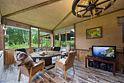 Двухэтажный основной дом с кухней, вмещающий 19 человек.