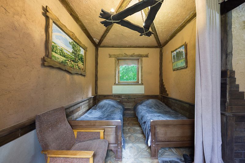На втором этаже два двухместных номера, один трёхместный и один четырехместный, каждый из которых оборудован санузлом.