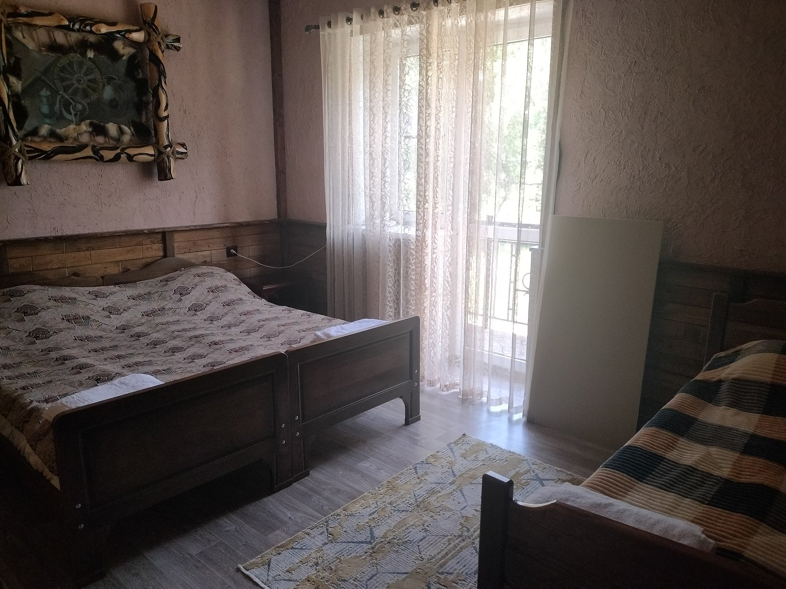 На первом этаже находится три номера, вместимостью 8 человек, кухня, санузел.