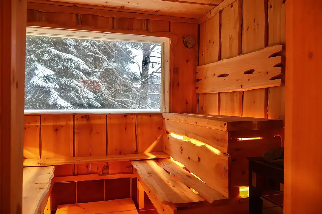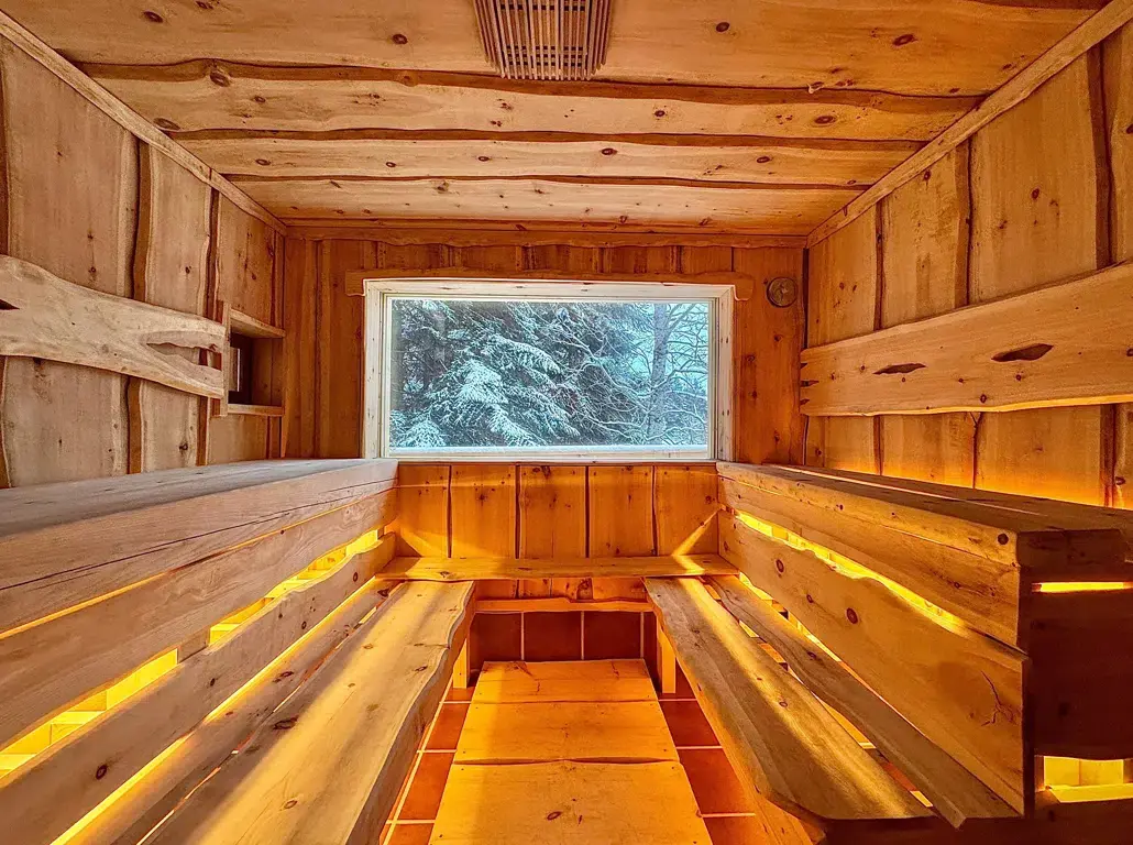 Шикарная баня в кедровой отделке где звучание тибетской флейты после парения уносит тебя далеко и надолго, а ледяная купель на улице будет отличным дополнением после парения!