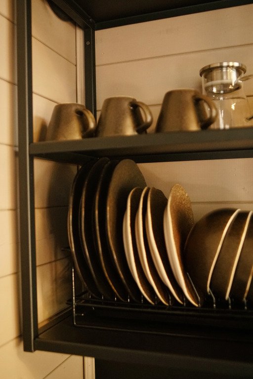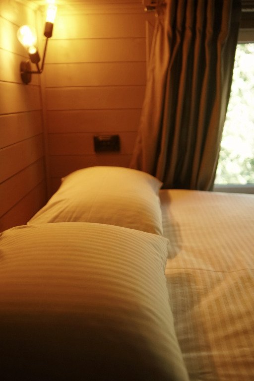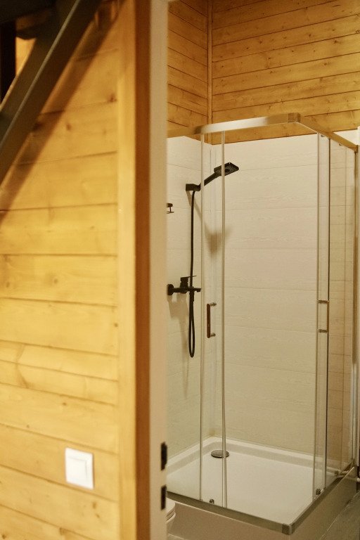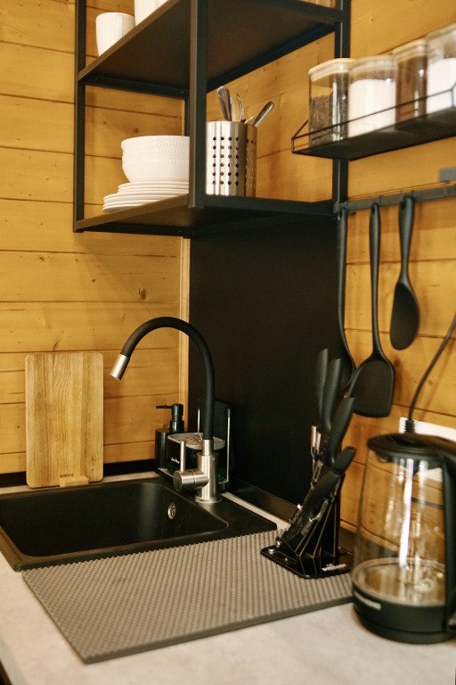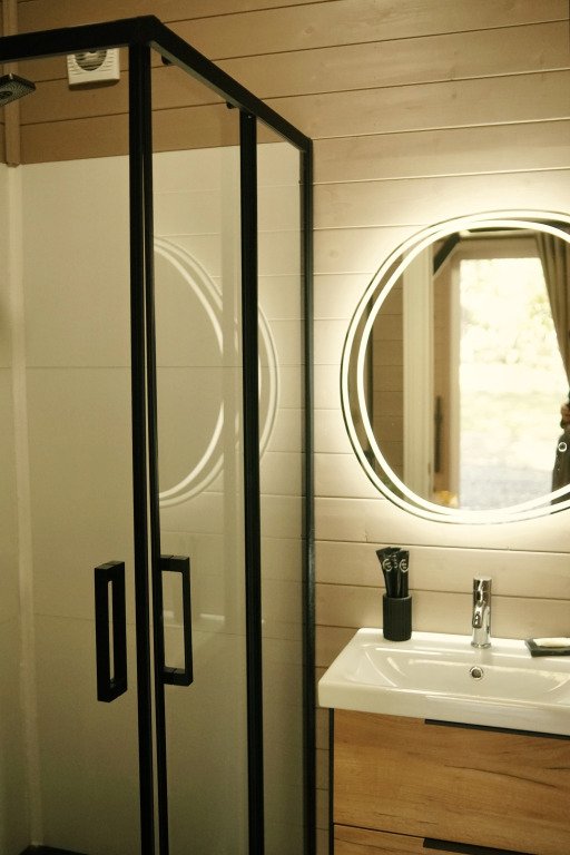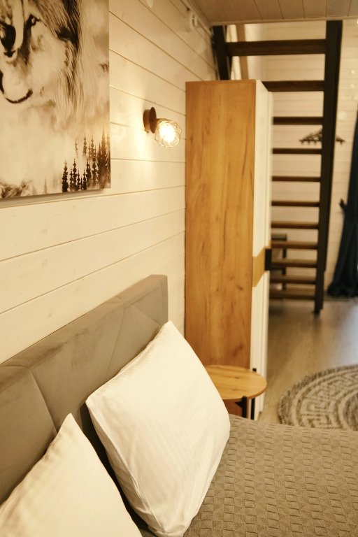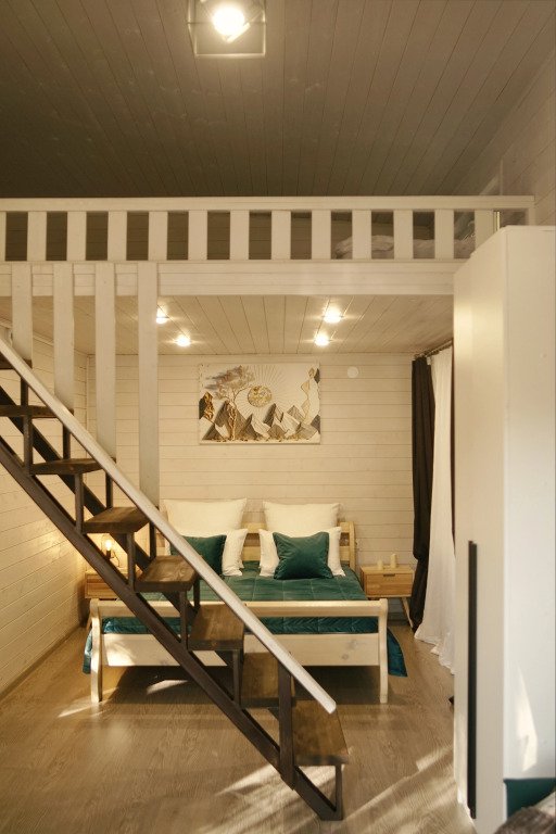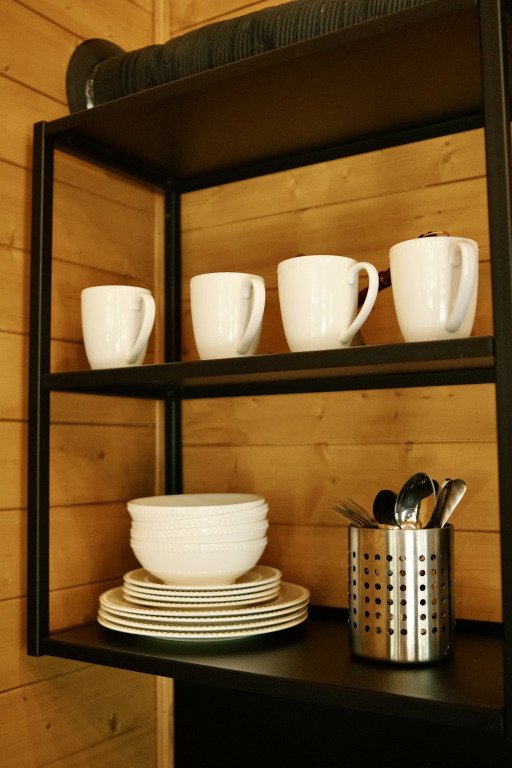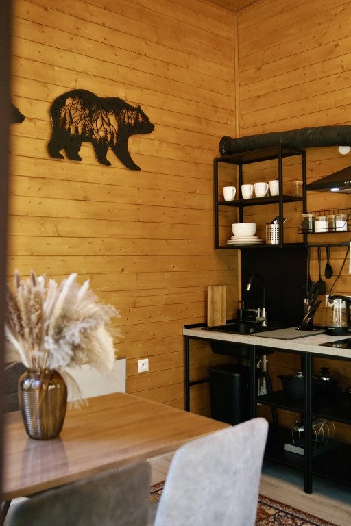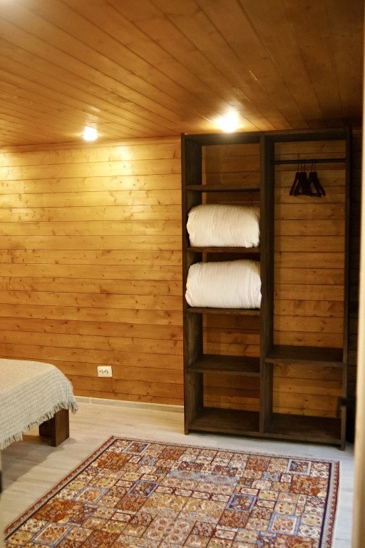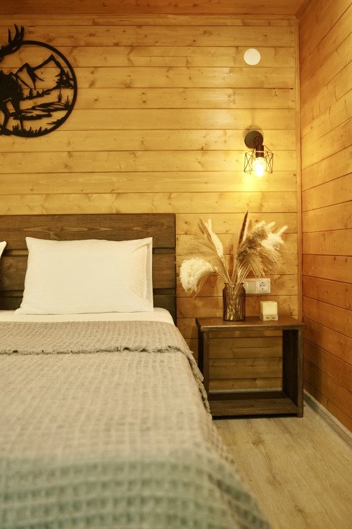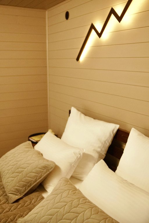 Шале в глэмпинге рассчитаны на пребывание до 4-х гостей. Имеются двуспальная кровать и двуспальный матрас на втором свете, в связи с низким потолком. Предоставляется необходимая посуда и предметы гигиены, мебель с ортопедическим матрасом и спальными принадлежностями, постельное бельё. Также к услугам гостей есть персональная мангальная зона с принадлежностями для барбекю у каждого шале, чистая ледниковая вода прямо из-под крана.