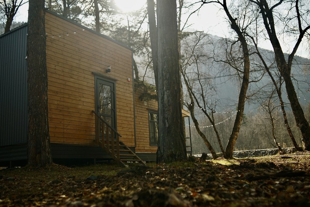 Глэмпинг Terra Glamp располагается в Архызе, в хвойном лесу на берегу реки.