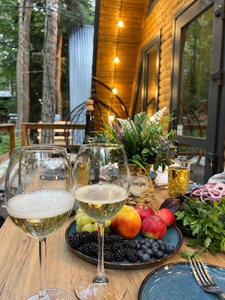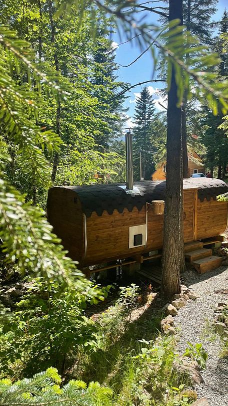 Для тех, кто ищет расслабления, отель предлагает уникальные возможности: гости могут заказать баню на дровах, где до шести человек смогут насладиться паром, а также горячий чан и холодную купель для контрастных процедур. В уютной комнате отдыха с большим столом и скамейками можно провести время за беседами, наслаждаясь ароматным горным чаем и другими угощениями.