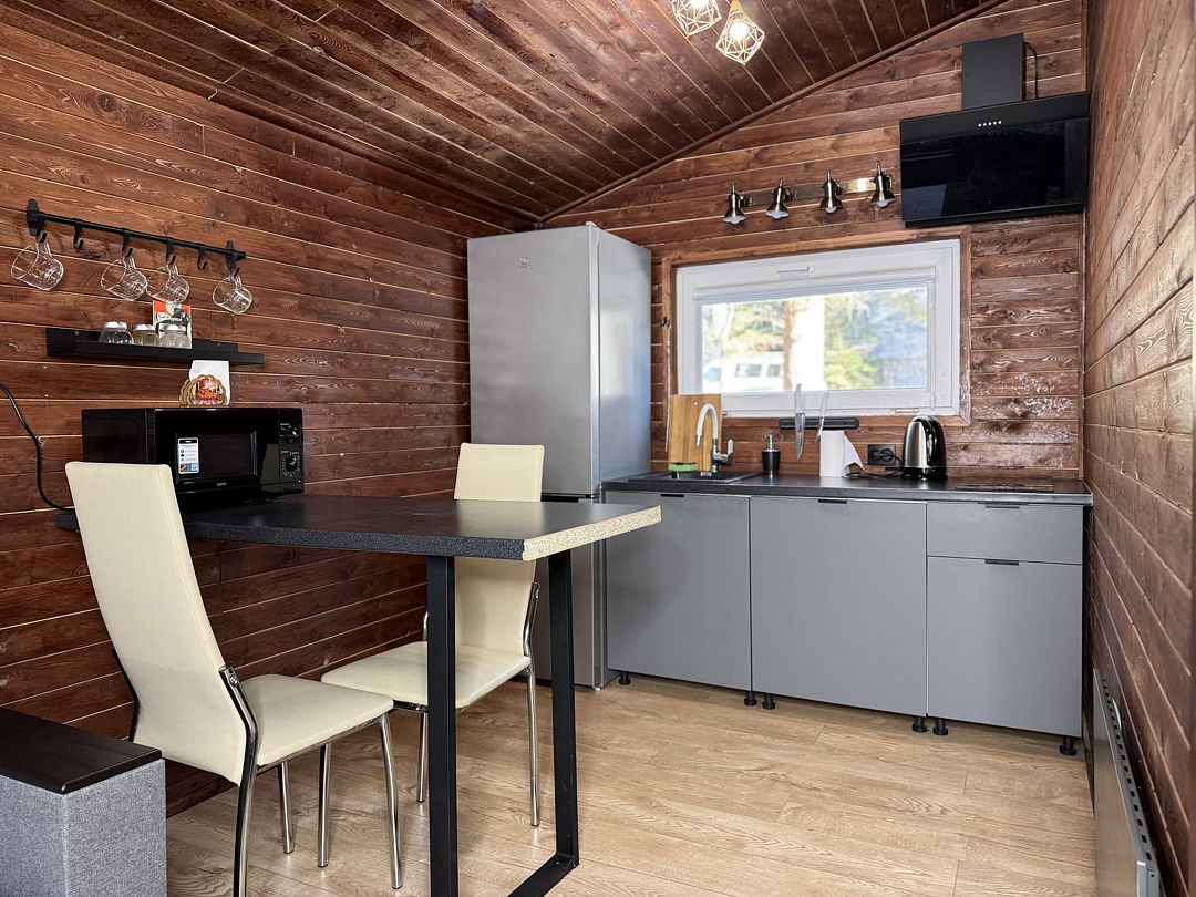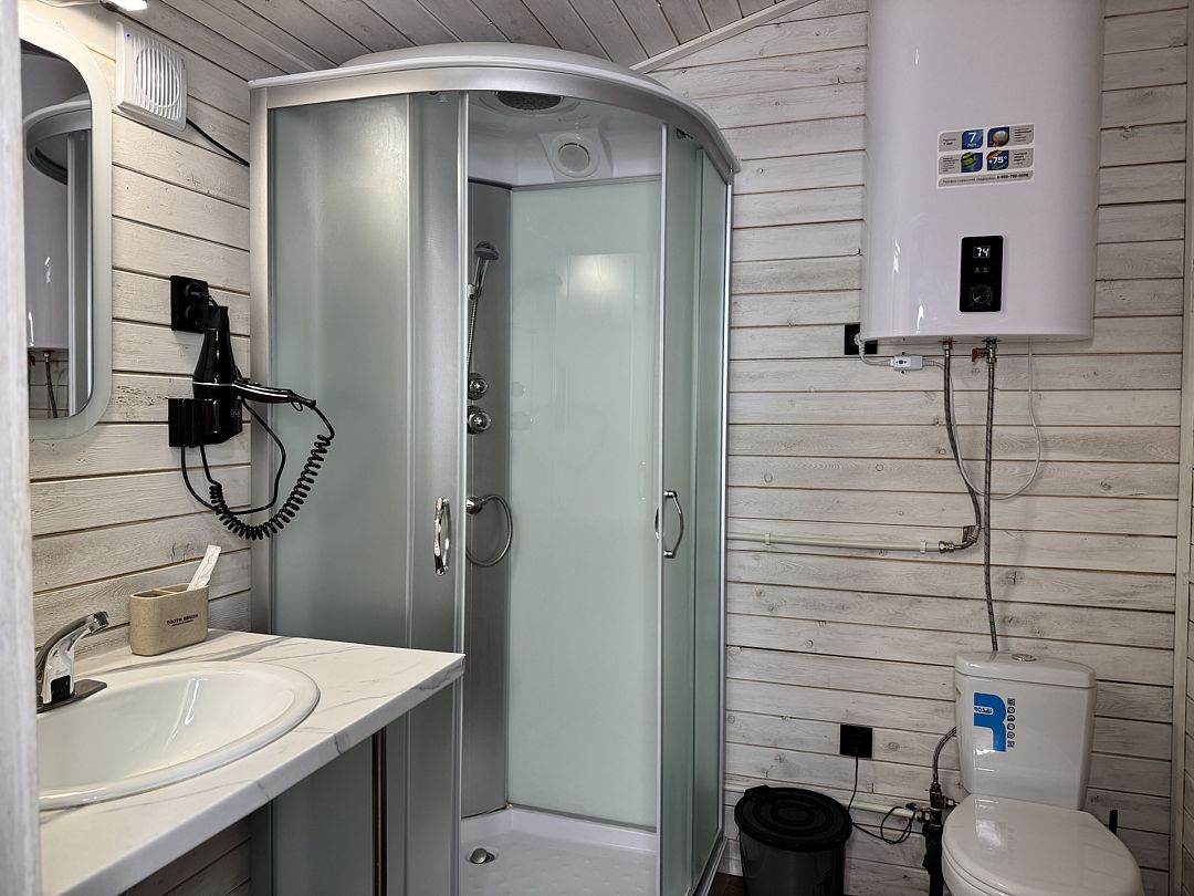 В эко-домах уютно и тепло, поскольку в каждом доме установлен датчик температуры воздуха, имеется ТВ, Wi-Fi, санузел, фен, сейф, кухонная зона с варочной панелью, микроволновой печью и двухкамерным холодильником.
