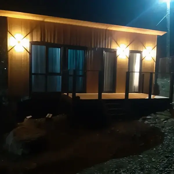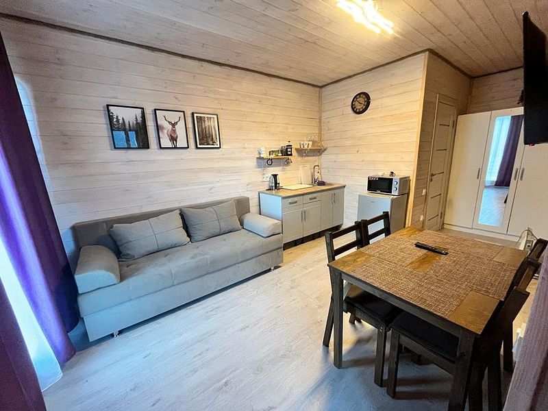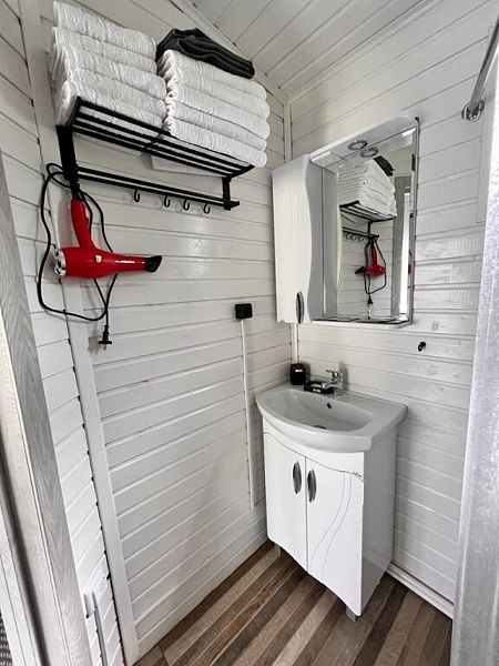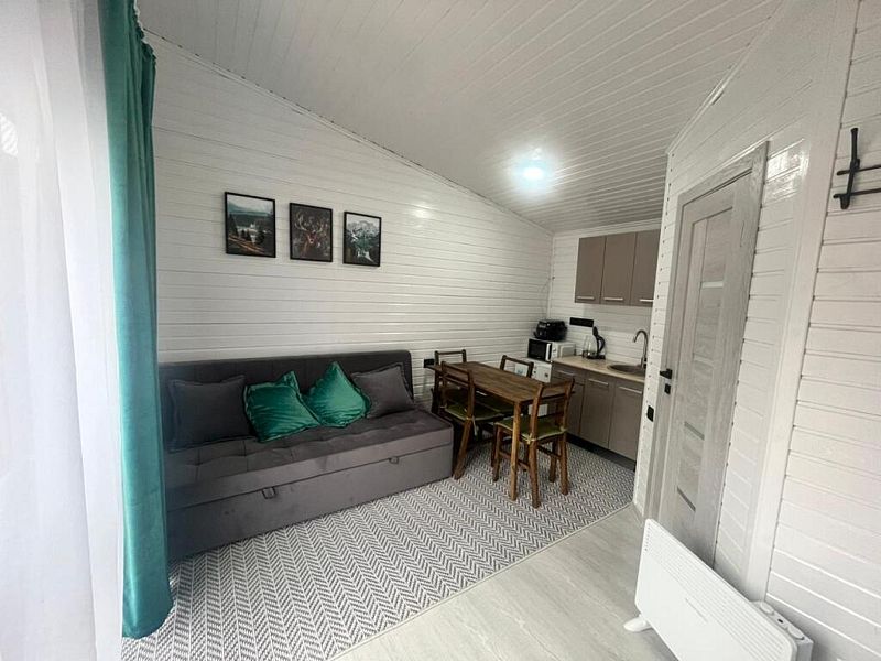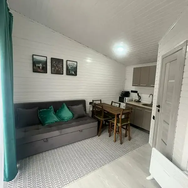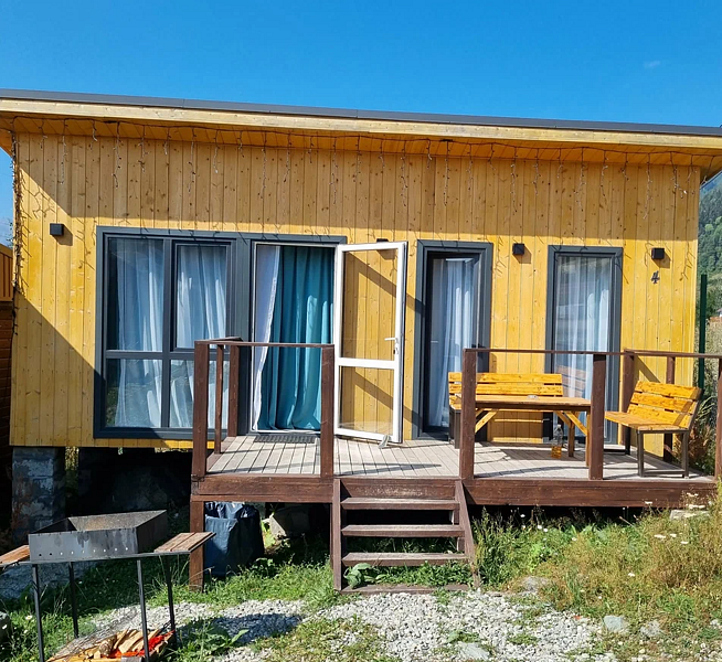 Вы можете разместиться в одном из уютных домиков, каждый их которых оснащён всеми необходимыми удобствами, а также обладает звукоизоляцией.