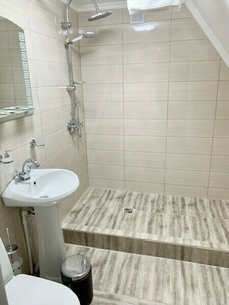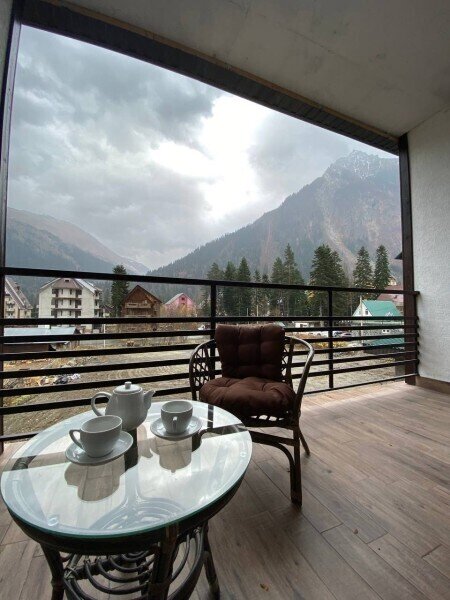 Новый корпус, введен в строй в 2023 году. В номере с террасой вид на горы. В каждом номере своя душевая и необходимая мебель.