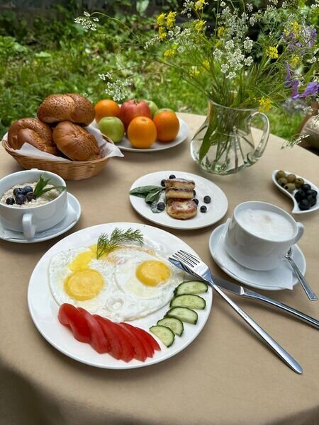 Есть завтраки, довольно неплохие: комплекс каша, яичница с сосиской, десерт. Плюс дополнительно можно брать хлопья, колбаса, сыр.
