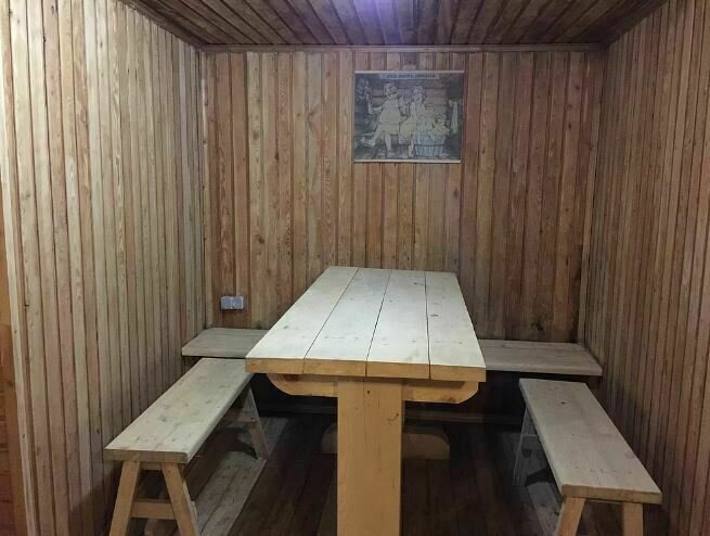 Общая кухня на первом этаже. Чтобы забронировать весь коттедж необходимо забронировать оба номера.