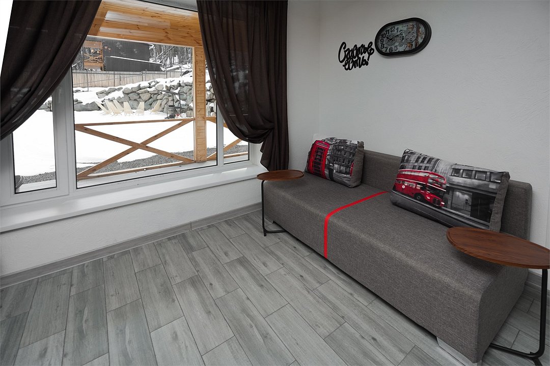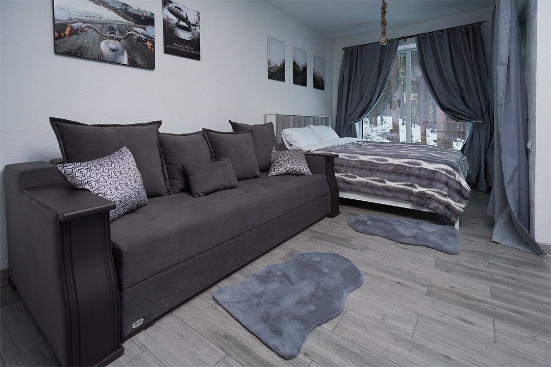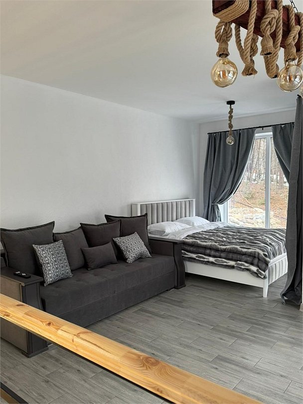 два телевизора, Wi-Fi, фен, микроволновая печь, утюг, душевая кабина, кровать «King size», мебельный гарнитур, диван-кровать, мини-холодильник, вид на горы, вид на лес, без питомцевВ гостиничном номере