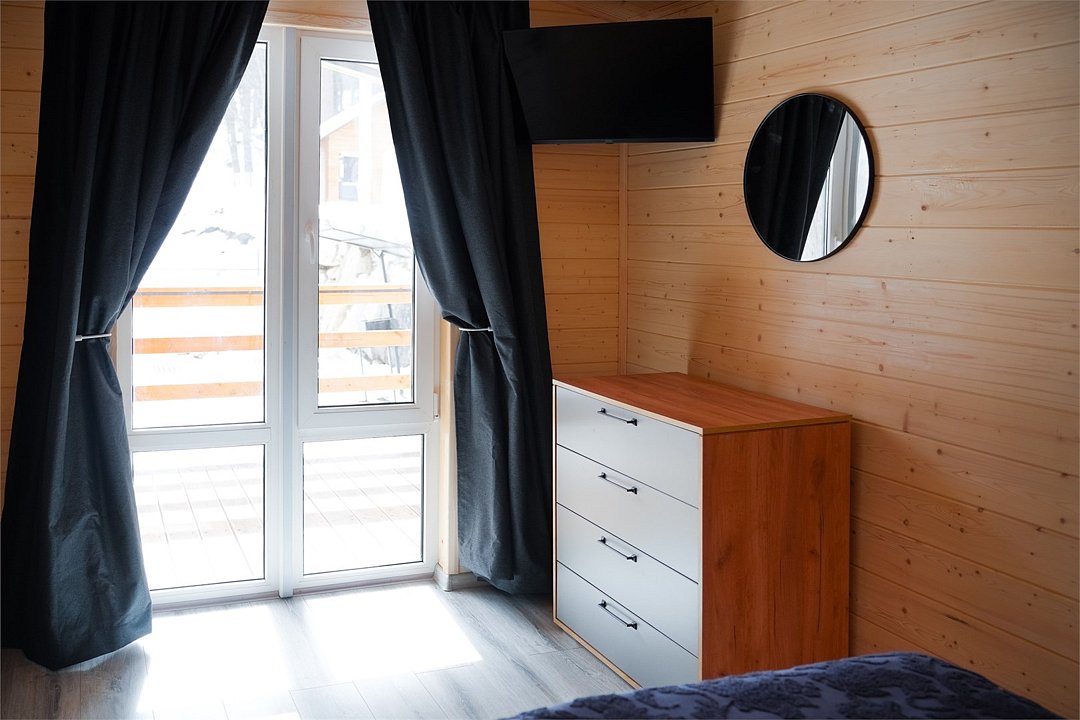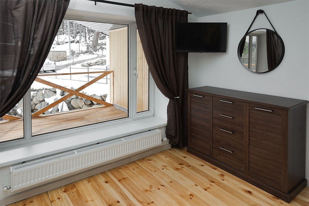 два телевизора, Wi-Fi, фен, утюг, обогреватель, душевая кабина, кровать «King size», мебельный гарнитур, диван-кровать, мини-холодильник, вид на горы, вид на лесВ гостиничном номере