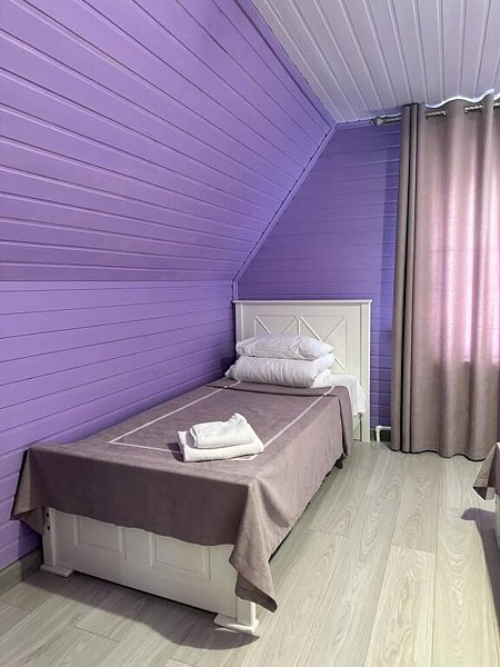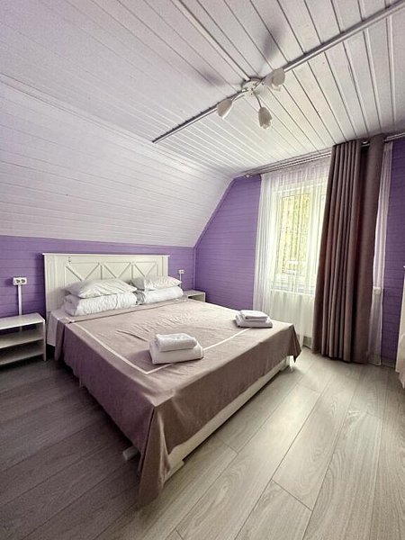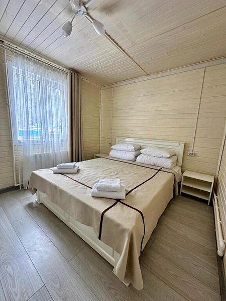 Двухэтажный комфортабельный коттедж вместимостью до 8 человек оборудован кухней, уютными спальнями, совмещённым санузлом и гостиной. В коттедже три изолированные спальни. На втором этаже располагаются две спальни, в каждой из них двуспальная + односпальная кровать (2+1), где могут разместиться , например, родители с ребенком. На первом этаже ещё одна спальня, оснащена двуспальной кроватью для тех, кто хочет уединения. В коттедже есть кухонная зона, где вы сможете готовить еду для семьи. Включает в себя индукционную плиту, холодильник, посуду и кухонные принадлежности. Ванная комната с душем, туалетом и горячей водой. Телевизор с доступом в интернет, WiFi на всей территории базы и придомовая мангальная зона. Важным фактором является близость коттеджа к горным тропам, пешим маршрутам и к другим природным достопримечательностям, которые вы хотели бы исследовать во время отдыха. Размещение с любыми животными в этом коттедже – запрещено.