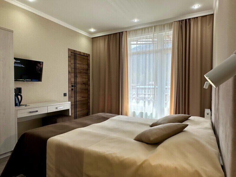 Номера отеля отличаются уютной и качественной отделкой, где каждая деталь продумана для максимального удобства и отдыха гостей. После насыщенного дня, проведенного на свежем воздухе, гости могут наслаждаться расслабляющей атмосферой, любуясь великолепными пейзажами из окон своих номеров.