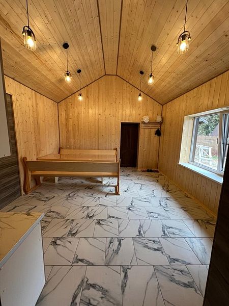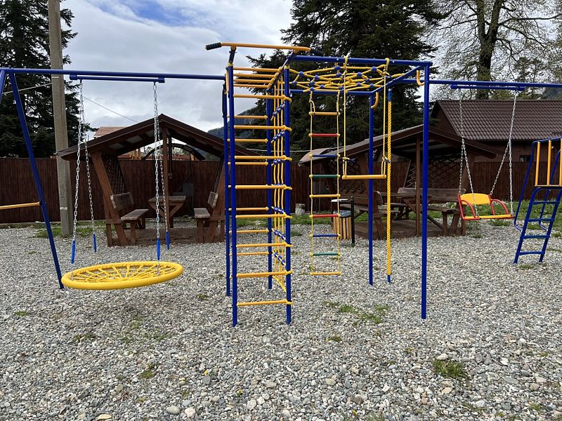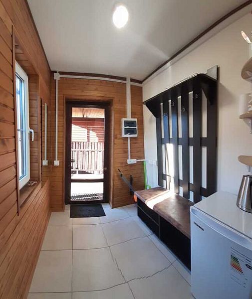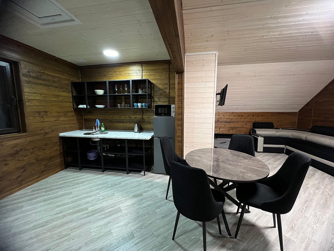 К услугам гостей — полностью оборудованная общая кухня с камином и всей необходимой посудой для самостоятельного приготовления пищи. Для автомобилистов предусмотрена бесплатная парковка на территории, а также удобная комната для хранения спортивного инвентаря и сушилка для одежды. Развлечения для всей семьи: детская площадка, батут и зона для барбекю. А для полного расслабления — русская баня, сибирский чан, уютные беседки, мангалы и казаны.
