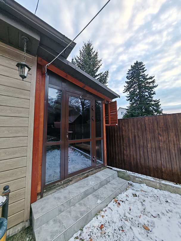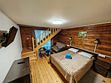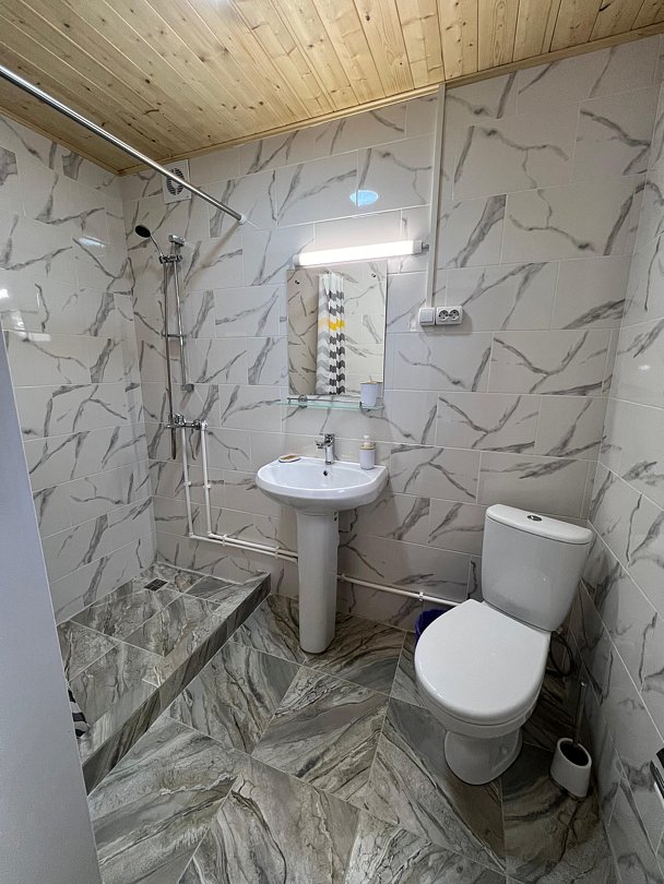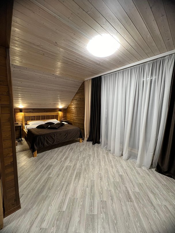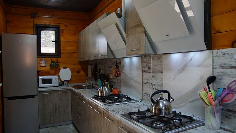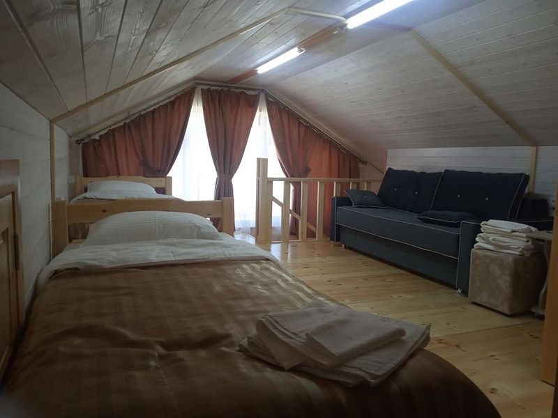 Совмещенный санузел с душем, фен, полотенца, сушилка для белья, водонагреватель. В номере кровать, ортопедический матрас, мягкая мебель, диван, ТВ, мини-холодильник, Wi-Fi, чайник, чашки, питьевая вода. Терраса с обеденным столиком, рядом ручей, прекрасный вид на горы.
