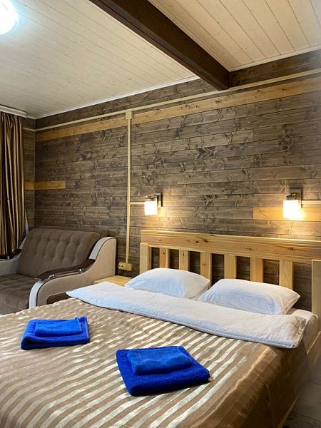 Комфортабельные номера гостевого дома оснащены всем необходимым для приятного отдыха: телевизором, удобной душевой кабиной, удобными кроватями и холодильником. Из окон открывается прекрасный вид, а уютный интерьер создает атмосферу домашнего тепла. Оснащение номеров варьируется в зависимости от выбранной категории.
