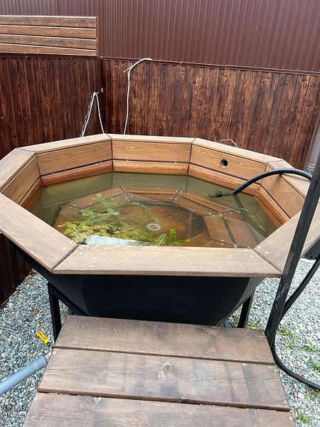 Сибирский чан с подогревом на дровах и удобным столиком для напитков.