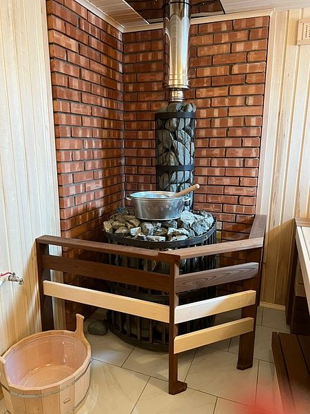 Инфраструктура: чан, зона отдыха, душ, березовые веникиМинимальное время аренды: 2 часаБаня на дровах, веники, предбанник, кухонный уголок, есть всё необходимое.