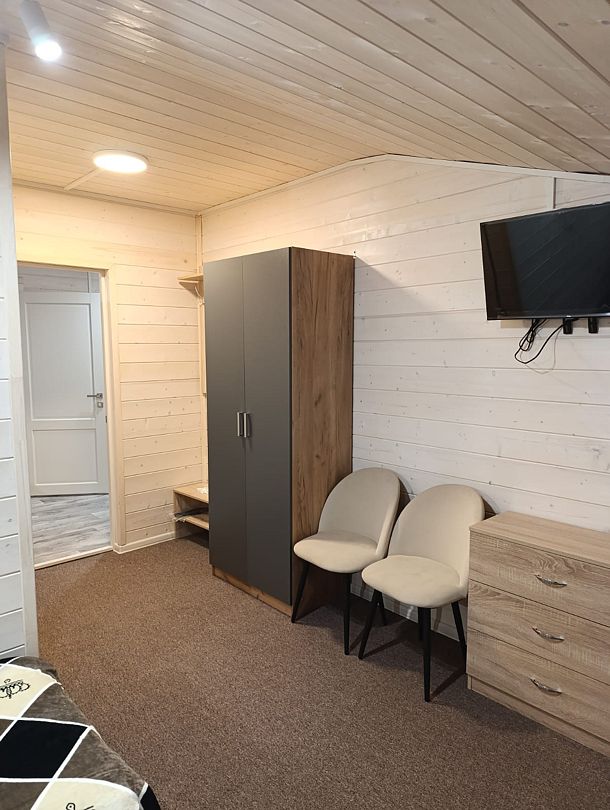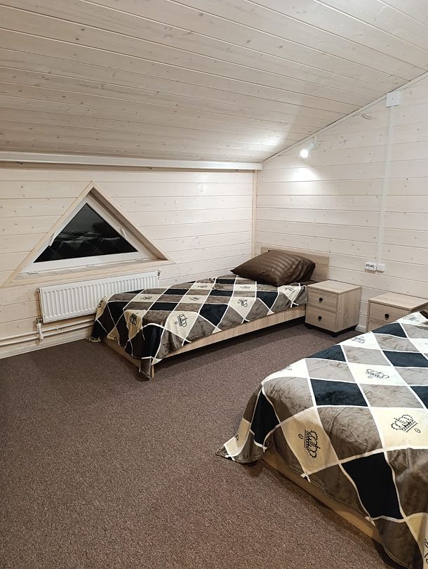 4 Односпальные кровати + 2 двуспальных дивана как основные места, с/у, душ, ТВ.