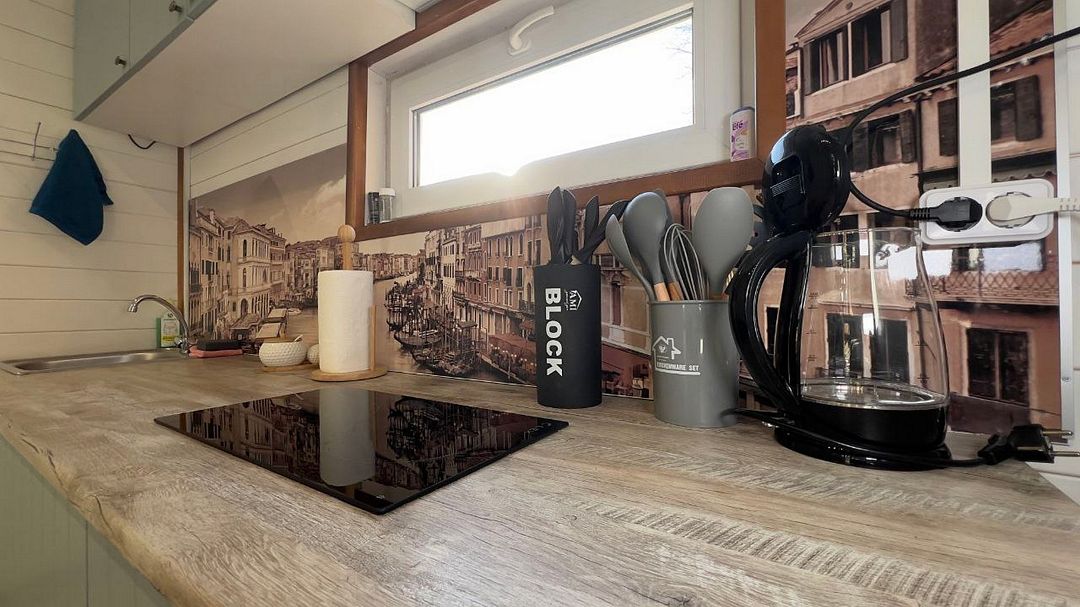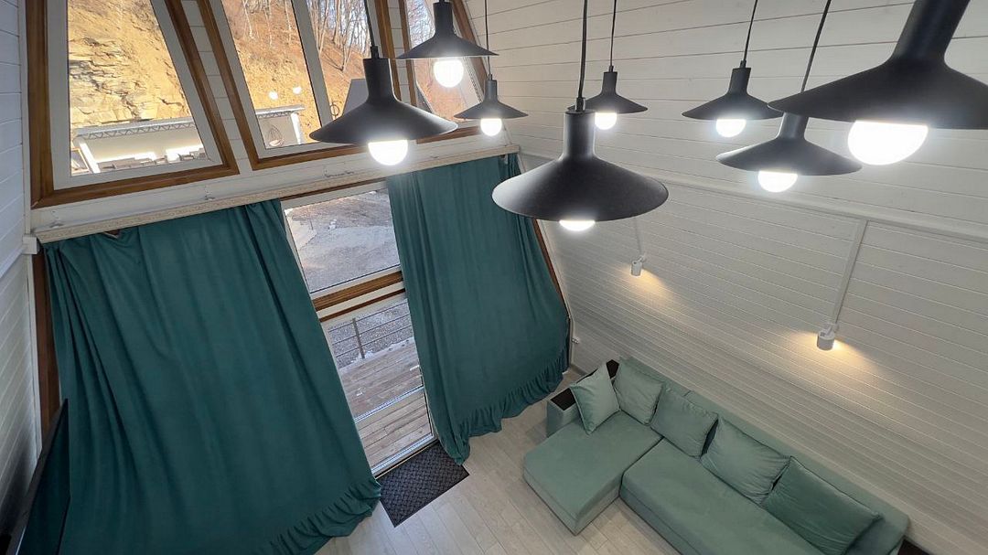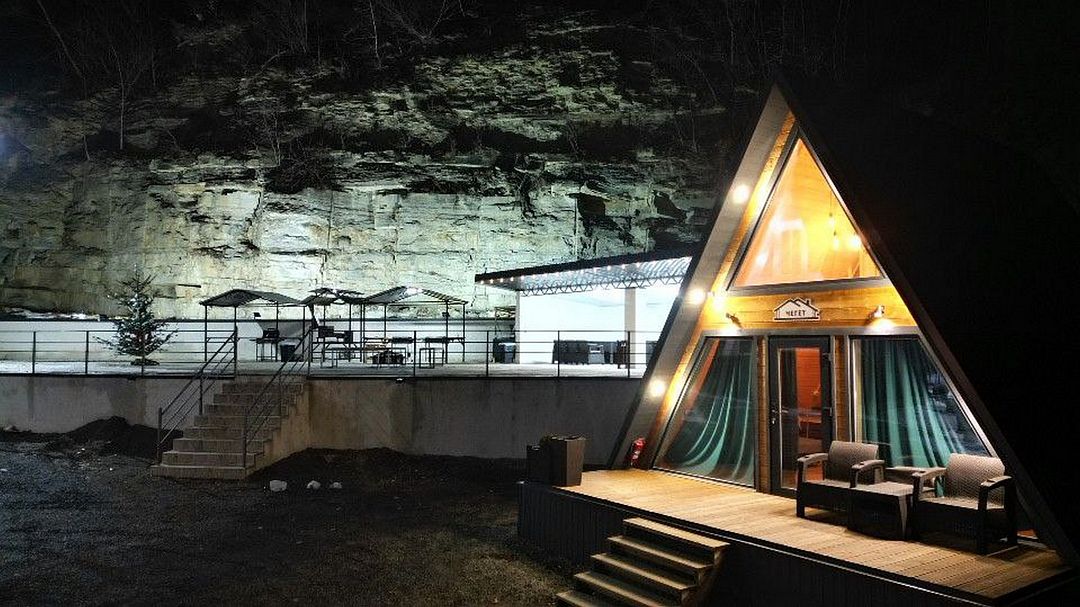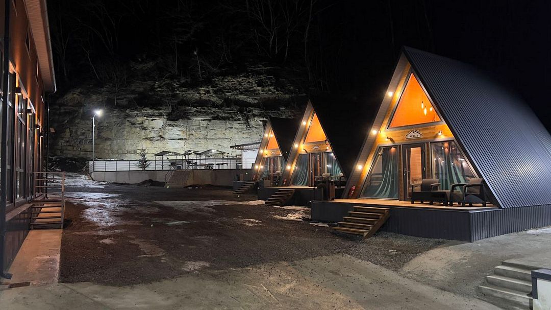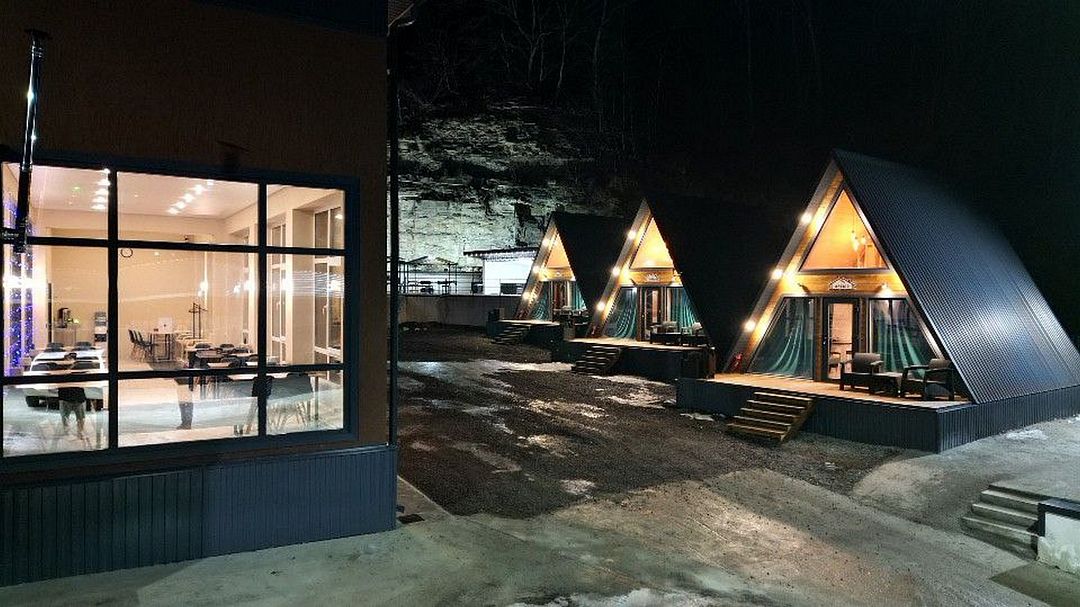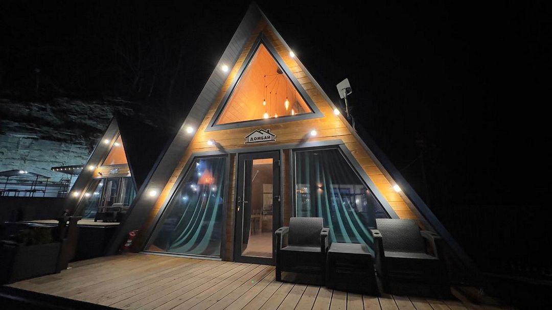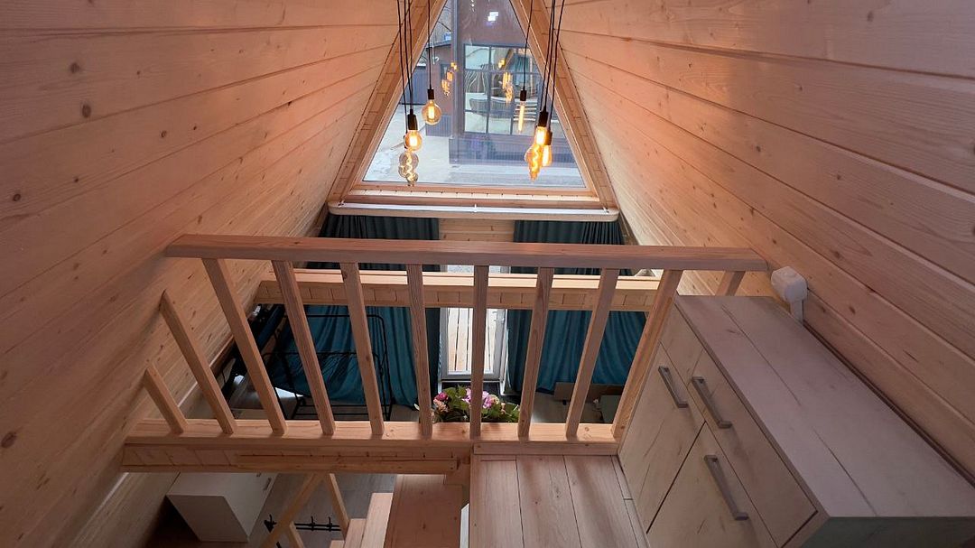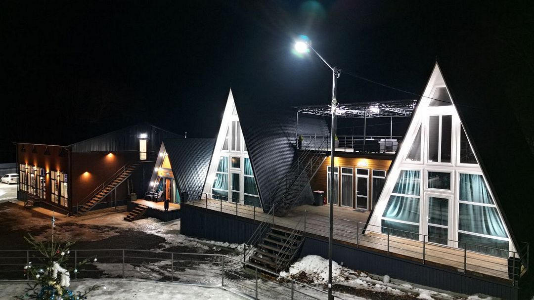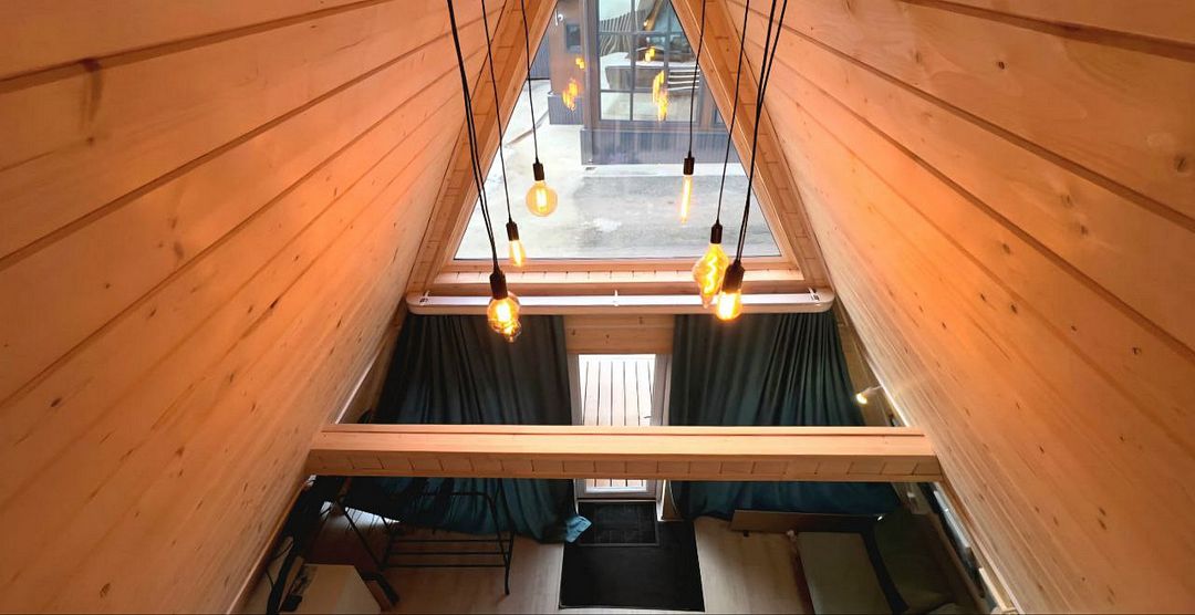 Проживание предлагается в домах А-фрейм, рассчитанных на 4-8 человек и оборудованных по высшему разряду. Дома включают гостиную зону с кухней, спальню и ванную комнату.