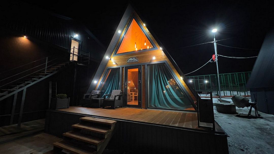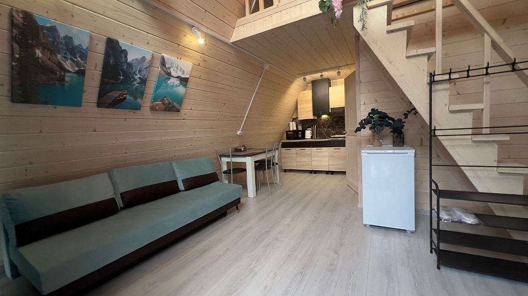 A-frame Двухкомнатный восьмиместный площадью 120 кв.м с видом на горы.