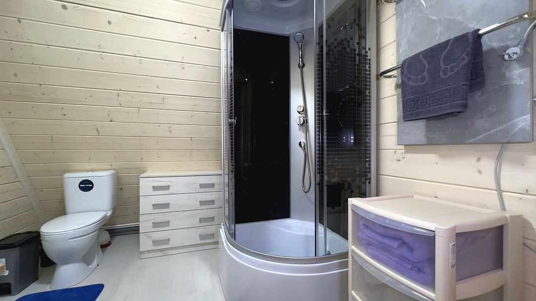 В доме: 1 двуспальный диван, на втором ярусе 1 двуспальная кровать.