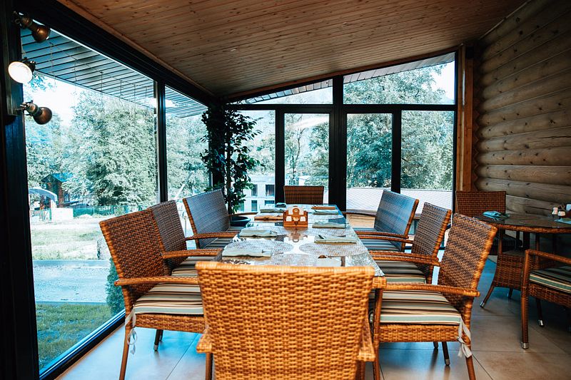 Гостям предлагаются блюда европейской и кавказской кухни, используя в приготовлении только отборные продукты, особенно привлекательны блюда, приготовленные на гриле.