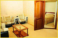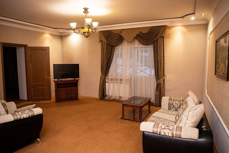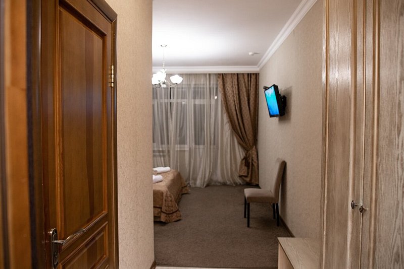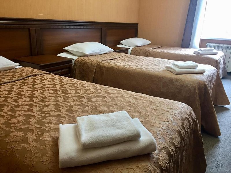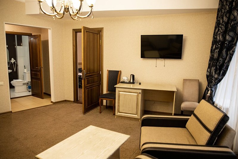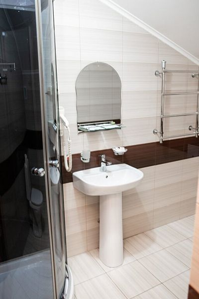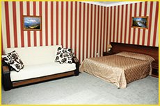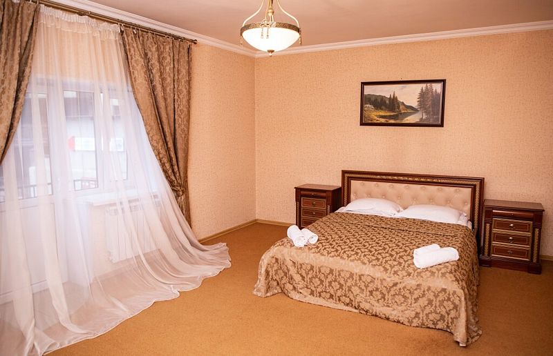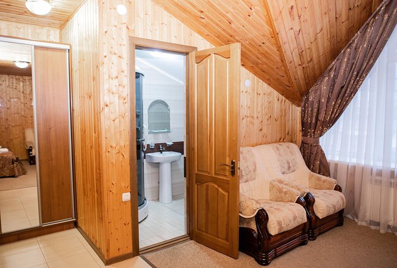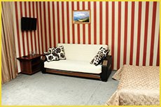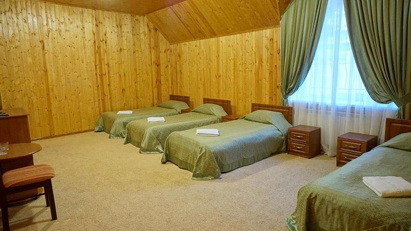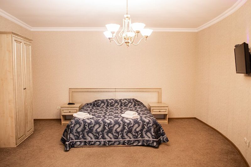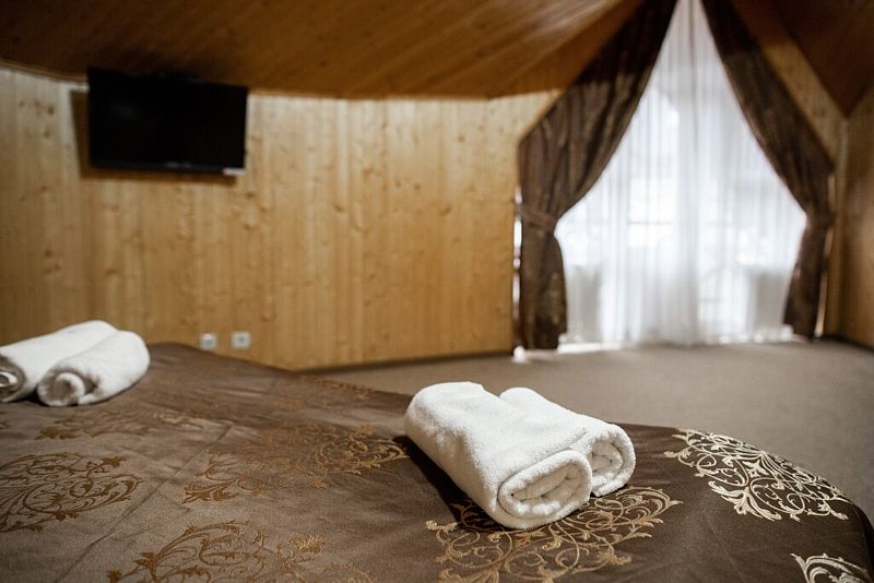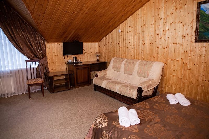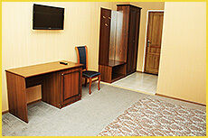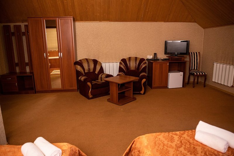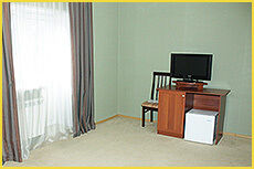 Для размещения гостей подготовлены уютные комфортабельные номера с собственной ванной комнатой и телевизором. Оснащение зависит от выбранной категории номера.