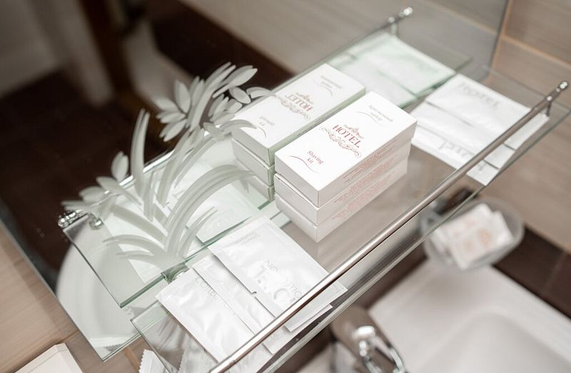 Ванная комната, с банными косметическими наборами