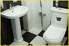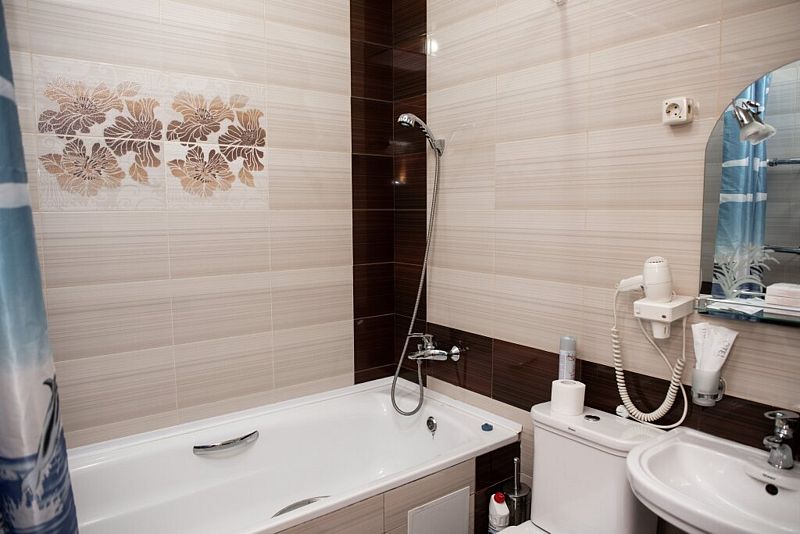 Ванная комната с феном , халатами, тапочками, банными косметическими наборами