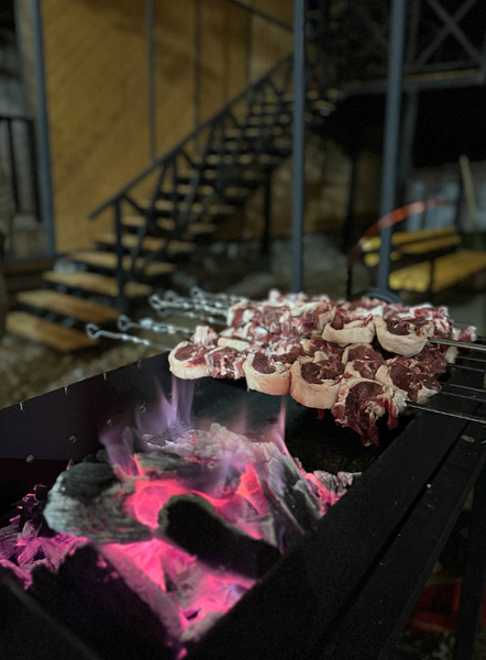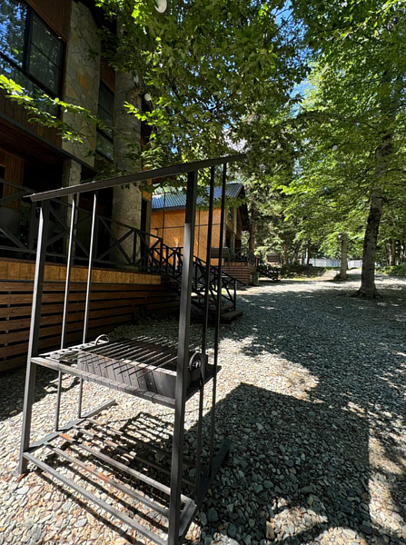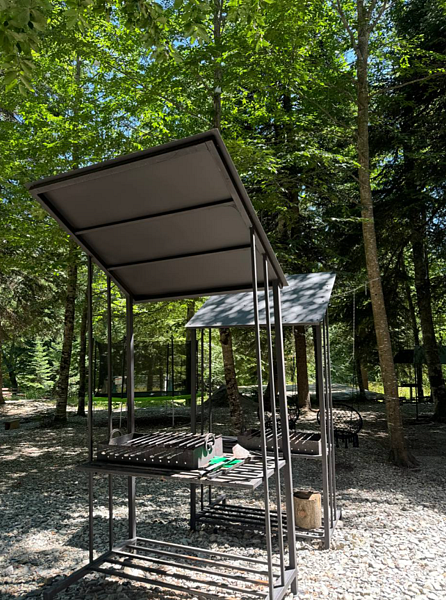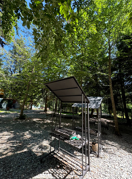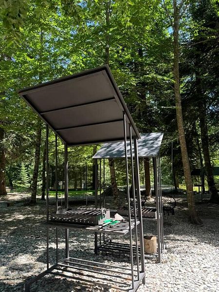 Мангальная зона оборудована всем необходимым для приготовления пищи: мангалами, грилями, шампурами и решётками. Рядом с зоной удобные столики и скамейки для комфортного отдыха.