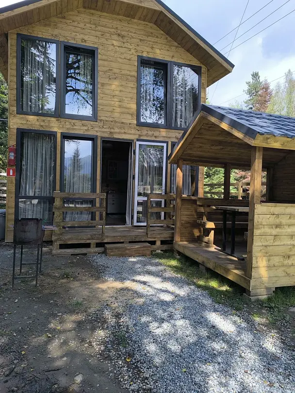 Семейный отдыхДостоинстваРасположение домиков отличное, можно наслаждаться красивым видом и природой. Все удобно и уютно, есть все необходимое для комфортного проживания.