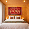 Двухместный стандартный номер, выполненный из экологичного бруса, отличается тёплой атмосферой и естественным уютом. Натуральная фактура древесины создаёт особое ощущение близости к природе, при этом предполагая некоторую слышимость — характерную особенность деревянных интерьеров.