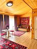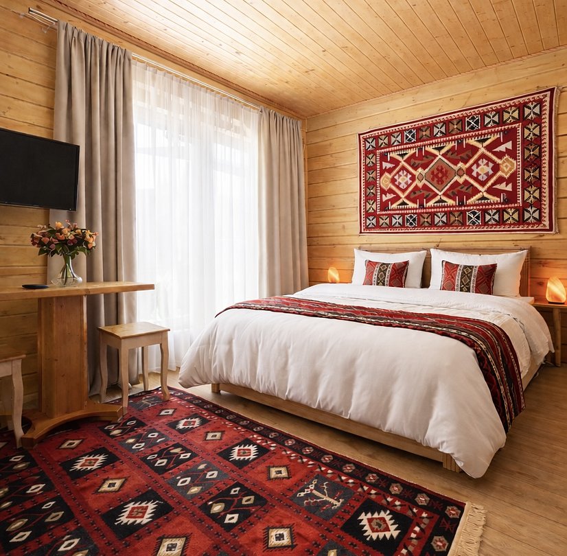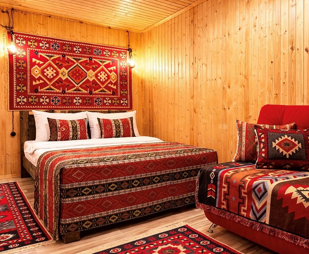 Двухместный стандартный номер, выполненный из экологичного бруса, отличается тёплой атмосферой и естественным уютом. Натуральная фактура древесины создаёт особое ощущение близости к природе, но при этом предполагает некоторую слышимость — важная особенность деревянных интерьеров. Гости могут воспользоваться прямым выходом на общую террасу с живописным видом на горы, идеальную для спокойного отдыха на свежем воздухе. Номер оснащён всеми необходимыми удобствами для комфортного пребывания.