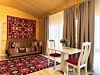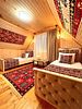 Трёхкомнатный номер, выполненный из экологичного бруса, отличается тёплой атмосферой и естественным уютом.